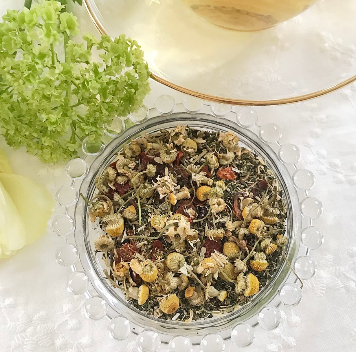免疫力を上げるエキナセアやローズヒップ、ビタミン・ミネラルの多いネトル、「植物のお医者さん」と呼ばれるカモミールをブレンド。