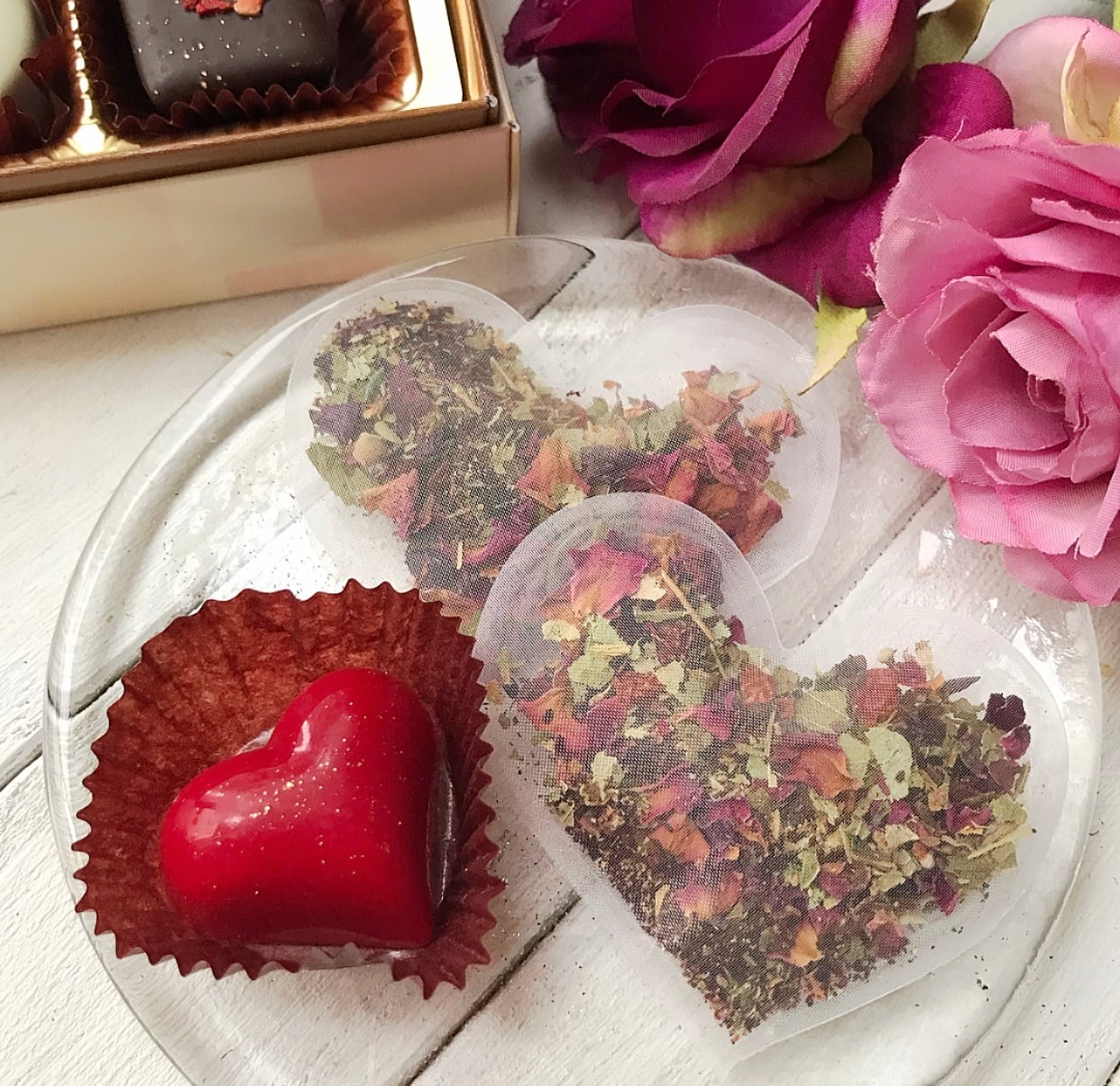 バレンタインにぴったりのハート型ティーパックのハーブティーです。